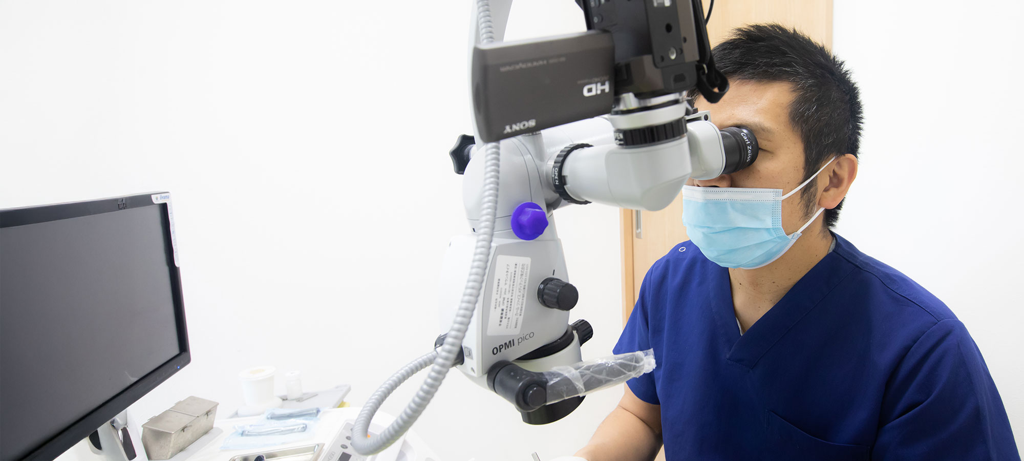 歯科医師、歯科衛生士ともに、マイクロスコープを使用